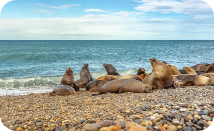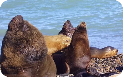 En Punta Pirámides a sólo 5 km de Puerto Pirámides se encuentra otra colonia de lobos marinos